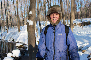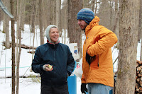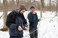 On March 5th, Carol planned a delicious day in the woods for us. We met at the Germantown Farm in upstate New York. About a 1/2 mile off the road, down by a stream Chris and Kaya had a maple shack set up. Under the lean-to was a brick fire pit with large metal pans steaming above it. There was also lots of wood to chop. Rebekah and I both attempted it. However, we weren't that good at it. Christopher chopped quite a bit of wood early on. Michael fell into a zen-like mode of chopping wood later in the day. It was amazing to see his skill and ease grow over such a short time.